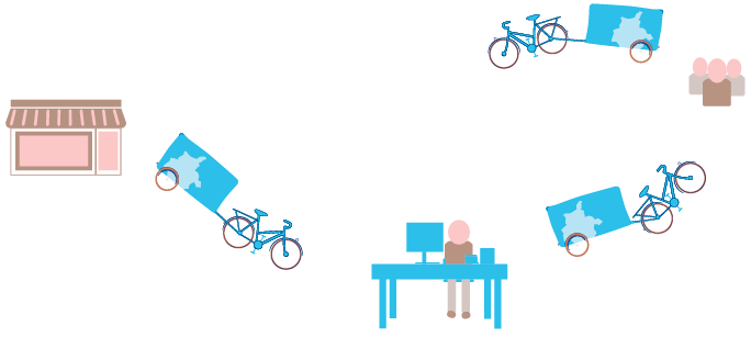 Livraison à la course de tous vos clients depuis votre commerce ( ameublement, boulangerie-pâtisserie, fleuriste, épicerie, librairie, mode... )